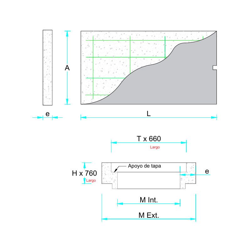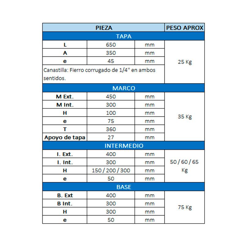 Componentes: Base, Intermedio h=0.30 m, Marco y Tapa